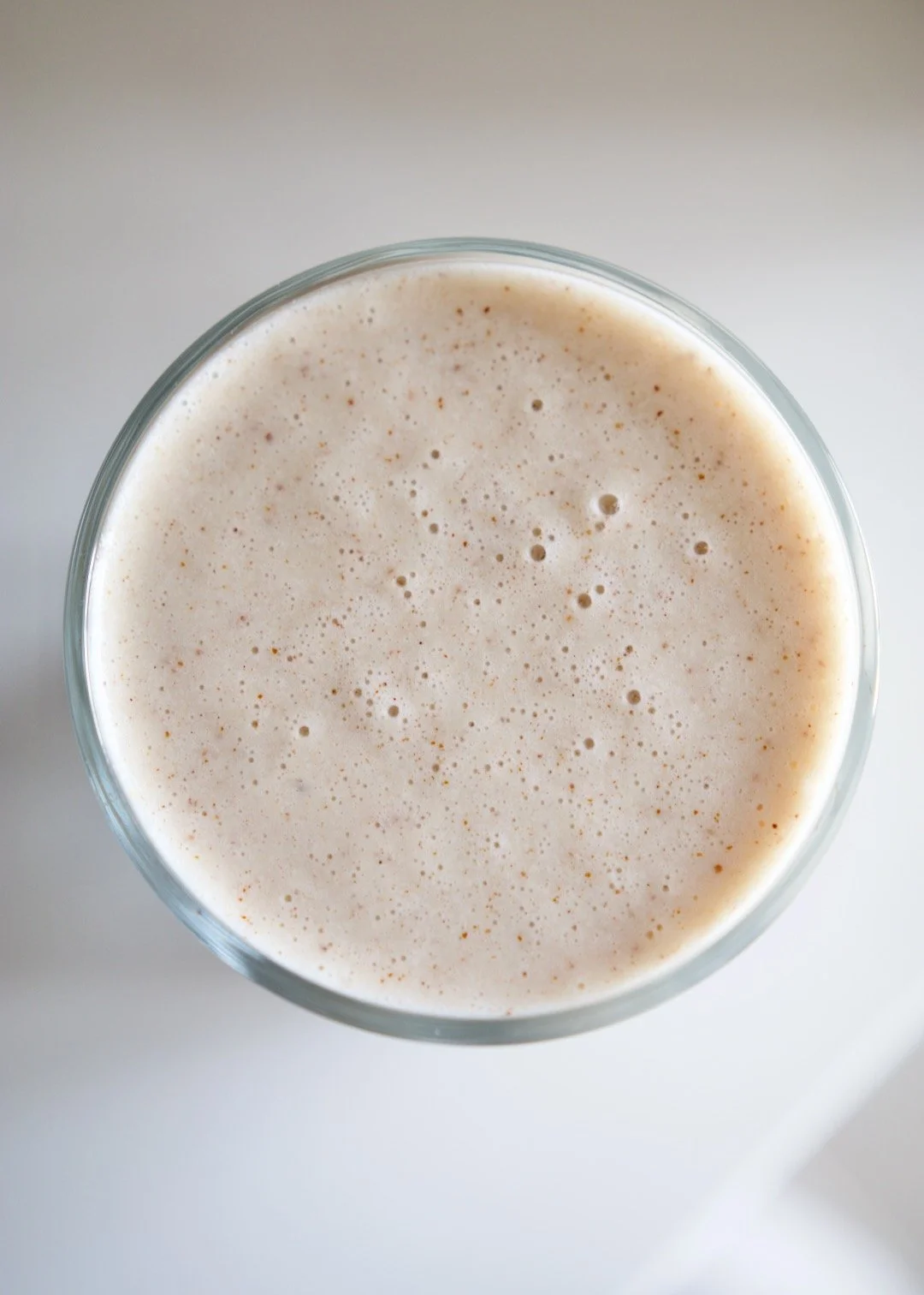A creamy + comforting smoothie made with banana, cauliflower, nut butter and cinnamon.
